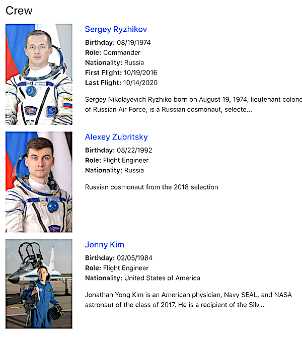 The crew consists of Roscosmos cosmonauts Sergey Ryzhikov, Alexey Zubritsky, and NASA astronaut Jonathan “Jonny” Kim.