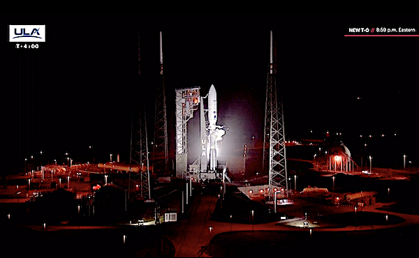 NEW LAUNCH TIME. ULA Launch Director Eric Richards has instructed the team to coordinate a new launch time of 8:59 p.m. EDT (0059 UTC). That is near the very end of the available launch window today. We continue to hope the weather situation will clear.