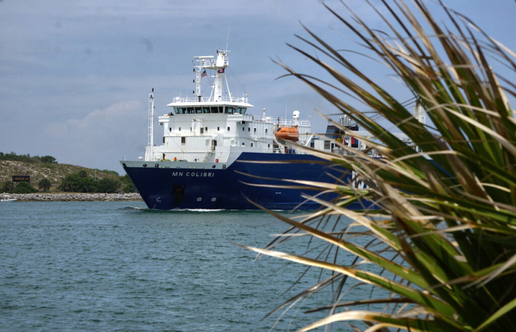 The satellite and its two instruments were last observed in the cleanroom at OHB headquarters in Bremen, where functional and environmental testing and integration was completed. It was then packed up ready for shipping. The satellite traveled in a safe container on board the MN Colibri cargo ship which left Bremen harbor on April 23rd. This leg of the journey, across the Atlantic, was completed on May 6th and the satellite is now being unloaded.