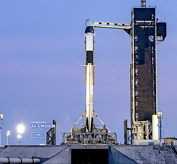 SpaceX is targeting Tuesday, June 10 for Falcon 9’s launch of Axiom Space’s Axiom Mission 4 (Ax–4) to the International Space Station from Launch Complex 39A (LC-39A) at NASA’s Kennedy Space Center in Florida. Launch is targeted for 8:22 a.m. ET, with a backup opportunity available on Wednesday, June 11 at 8:00 a.m. ET.