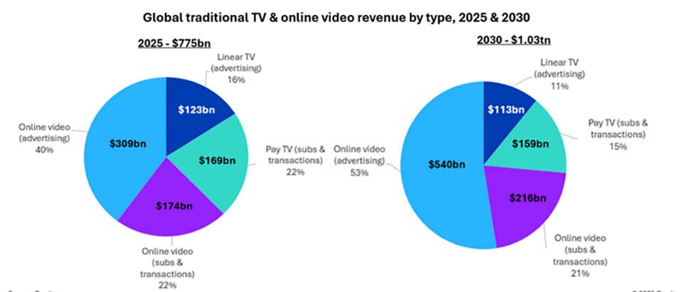 The global media and entertainment industry is approaching a historic financial milestone as combined revenues for traditional TV and online video are forecast to surpass 1.03 trillion dollars by 2030. According to data presented by Maria Rua Aguete, Senior Research Director at Omdia, during the FED Show in Madrid on March 31, 2026, this represents a massive structural shift from 775 billion dollars in 2025.
