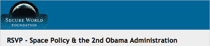 ...discuss the space policy challenges facing President Obama and his administration in their second term. Please join SWF and a panel of experts as we examine four more years and review space issues from the civil, Congressional, commercial (including ITAR reform), and security perspectives. This event will be held on Monday, December 3, 2012, from 12:00 p.m. to 2:00 p.m. at 1779 Massachusetts Avenue, NW, Washington DC, 20036. The featured experts will include....