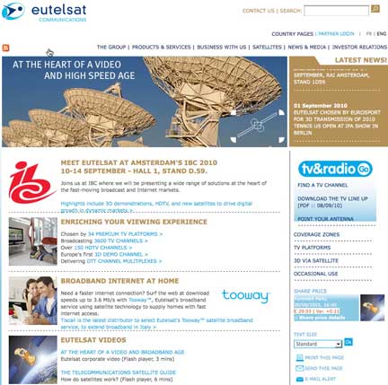 While the universe of SD channels continues to expand — Eutelsat registering the arrival of almost 400 channels over the last 12 months — HD roll-out is accelerating as satellite payTV operators integrate premium HD content as a differentiating factor next to terrestrial platforms. Eutelsat’s range of video positions serving markets in Europe, the Middle East and Africa are a key accelerator for HDTV. More than 150 channels are already broadcast, with leading pay-TV platforms, such as Sky Italia investing in HD technology to broadcast 36 HD channels today and 50 by 2011. Eutelsat forecasts that its satellites will be broadcasting over 500 channels in the coming five years. Eutelsat’s stand will display the crystal-clear definition of HD content broadcast from four video positions (13 degrees East, 16 degrees East, 9 degrees East and 5 degrees West) by SKY Italia’s SKY Sport channels, Albania’s DigitAlb and France’s FRANSAT platform, as well as i-concert (the HD Concert music channel).
