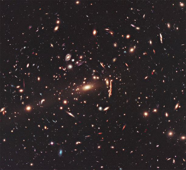 Taking advantage of two of Hubble’s powerful cameras, the Advanced Camera for Surveys and the Wide Field Camera 3, the CLASH survey covers a broad wavelength range, from ultraviolet to near-infrared. Astronomers need the diverse colours to estimate the distances to the lensed galaxies and to study them in more detail. Hubble’s unique capabilities allow astronomers to estimate distances to galaxies that are four times fainter than those that ground-based telescopes can see.