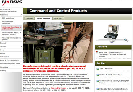 [SatNews] Harris Corporation (NYSE: HRS) has introduced the RF-5410-FC FalconCommand(tm) system, a portable software application that provides advanced tools for managing and synchronizing data across the battlefield.