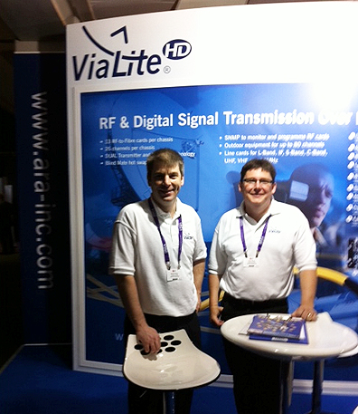 ViaLite @ IBC 2011, booth manned by Martin and Gary — photo by SatNews Publishers