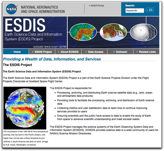 the Earth Science Data and Information System Project at NASA's Goddard Space Flight Center in Greenbelt, Maryland. The contractor will also coordinate and integrate task related activities with the project, NASA's Distributed Active Archive Centers, the Earth science data centers, science investigator teams, the user community, and other Earth Observing System contractors.