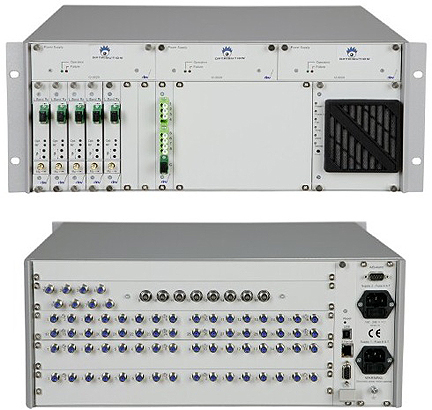 At the ANGA Cable 2011 conference and trade fair in Cologne, Germany, May 3 to 5, 2011, DEV Systemtechnik — for the first time — presents new redundancy options for its Intelligent Optribution Chassis DEV 7114. Unscheduled downtimes cause enormous follow-up costs, so there are heavy demands on the services availability of satellite ground stations, CATV head-ends and playout centers. Redundancy of important system functions and minimization of device count in the system are trusted measures for secure operations. The new redundancy options for the Optribution device are 6 x 1+1 maximum (one back-up path per main signal path), 1 x 4+1 (one back-up path per four main signal paths) or 1 x 8+1 (one back-up path per eight main signal paths). Up to now, this functionality could be realized only with at least two system components, the 3RU chassis DEV 7113 with 20 optical slots and the 4RU signal distribution system DEV 2190. Within the Optribution product family, the 4RU chassis DEV 7114 with a total of 16 optical slots distributes (1:8, 16, 32, 64, 128) and switches (4x8, 16, 32 und 4x64) the incoming signals. It may be equipped with a multitude of modules and options, including optical CWDM multiplexers and demultiplexers.