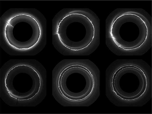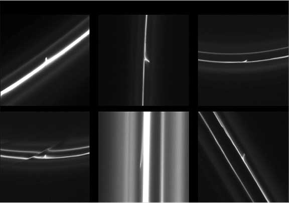 This set of six images obtained by NASA's Cassini spacecraft shows trails that were dragged out from Saturn's F ring by objects about a half mile (1 kilometer) in diameter. NASA/JPL-Caltech/SSI/QMUL