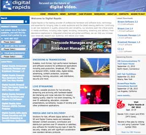 Digital Rapids has new versions of their Digital Rapids Transcode Manager automated, distributed transcoding software and the Digital Rapids Broadcast Manager multi-encoder management software. The Digital Rapids Transcode Manager software provides superior performance, quality, scalability and automation for high-volume, multi-format transcoding. A new, automated 'commercial black' removal feature in Transcode Manager 1.5 automatically detects and skips over blank sections of the source content originally intended for television advertising insertion. The results are seamless, transcoded outputs for VOD, multi-platform distribution, archive and other non-television applications without the need for time-consuming manual editing. Version 1.5 also adds audio masking, extended clip list functionality for combining multiple distinct clips, and a new user interface style. The Digital Rapids Broadcast Manager software provides centralized management, scheduling, monitoring and fault tolerance for multiple live encoders. Version 1.5 of Broadcast Manager expands the range of supported third-party video routers for automated management of incoming sources. Broadcast Manager can now control routers from Evertz and Nevion in addition to existing Harris router support. Broadcast Manager can automatically switch upstream video routers to user-selected input sources for scheduled encodes and re-route input signals as necessary during failover to backup encoders.