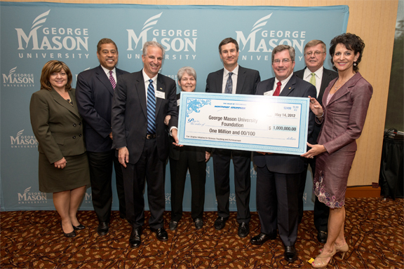 Photo above—During a ceremony at the Mason Inn Conference Center and Hotel on Mason's Fairfax Campus, Mike Papay, vice president, Cyber Initiatives, Northrop Grumman Information Systems presented a check to University President Alan G. Merten; Mark Ginsberg, dean of Mason's College of Education and Human Development; Donna R. Sterling, director of the VISTA program; and Marc Broderick, vice president of University Development and Alumni Affairs.