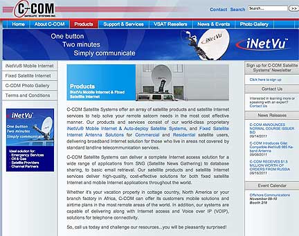 C-COM Satellite Systems will be showcasing its NEW iNetVu® 1.2m Airline Checkable Flyaway and NextGen 1.2m Drive-away Antenna at Offshore Communications 2011 in Houston. With over 4,000 units deployed worldwide, the iNetVu® mobile antennas have become the trusted choice for all Oil & Gas applications around the world.