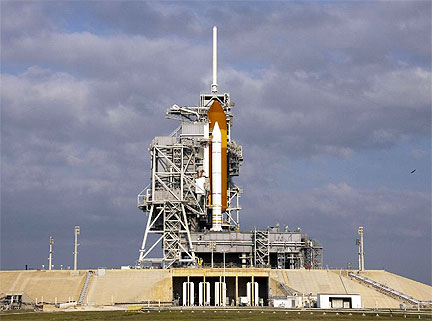 At Kennedy Space Center in Florida, space shuttle Endeavour is protected by the rotating service structure on Launch Pad 39A. Image credit: NASA/Troy Cryder