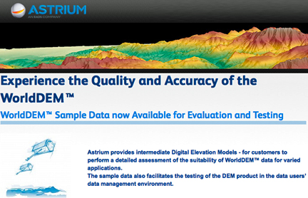 “This is an opportunity for potential customers to test the WorldDEM™ data and experience firsthand the remarkable level of accuracy of the WorldDEM™, that will surpass that of any satellite-based global elevation model available today,” said Vark Helfritz, Director of GEO-Information Corporate Development at Astrium Services.