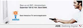 Advanced Digital Broadcast (ADB) has just won two awards at the 2010 CSI Awards. ADB was awarded the Best Interactive TV Technology or Application and Best Customer Premise Technology categories with its Carbo™ HD user interface and its 5720SX three-way hybrid platform, respectively. The ADB-5720SX three-way hybrid digital TV platform was judged to demonstrate a noteworthy technological advance that enables payTV operators to seamlessly combine content from three delivery networks on a single platform and, via ADB’s Carbo user interface, make it quick and easy for consumers to access it. The ability to converge content from traditional cable/satellite, terrestrial and IP networks presents huge opportunities for the Pay-TV industry.
