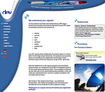 DEV Systemtechnik has special news for customers of the Company's RF distributing matrices. From January 1st through December 31st, 2010, customers based within the European Union(EU) can benefit from DEV’s Gold Service for the first year. Customers from Non-EU countries can enjoy the Silver Service when ordering defined DEV matrices — limited by available logistics only.