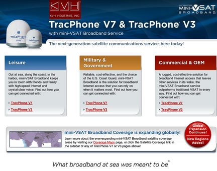 KVH Industries, Inc., (Nasdaq:KVHI) has announced that Netherlands-based Vroon has selected the KVH TracPhone® V7 and its mini-VSAT Broadband(SM) network as the new satellite communication solution for the more than 125 in-house managed vessels in its fleet. The selection follows a competition involving 22 different satellite communication providers and results in a multi-year mini-VSAT Broadband service contract covering Vroon's vessels and its global operations. Explaining the choice of KVH, Rob Frenks, Vroon's group ICT manager, said, "By choosing KVH, we are gaining an affordable, comprehensive solution that brings together proven hardware, a global network, and fully integrated network management and crew welfare solutions that will support our needs for years to come."