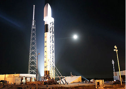 This first stage firing is part of a full launch dress rehearsal at the Space Launch Complex 40 at the U.S. Air Force Station at Cape Canaveral in preparation for the first Commercial Orbital Transportation Services (COTS) launch of the Dragon spacecraft. The rehearsal will exercise the countdown processes and end after the engines fire at full power for two seconds, with only the hold-down system restraining the rocket from flight. After the test, SpaceX will conduct a thorough review of all data as engineers make final preparations for the upcoming launch.