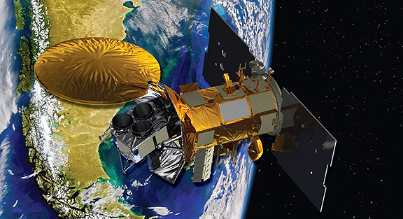 Artist's concept of the Aquarius/SAC-D spacecraft, a collaboration between NASA and Argentina's space agency, with participation from Brazil, Canada, France and Italy. Aquarius, the NASA-built primary instrument on the spacecraft, will take NASA's first space-based measurements of ocean surface salinity, a key missing variable in satellite observations of Earth that links ocean circulation, the global balance of freshwater and climate. The mission is scheduled to launch in June. Image credit: NASA