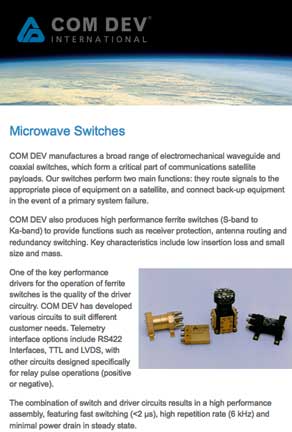 ...to deliver hardware for commercial and military communications satellites. The combined value of the contracts is in excess of $11 million. In addition, one of the contracts is initially structured as an Authorization to Proceed, and is expected to lead to a fully funded contract valued at a further $3 million, bringing the total expected value of the three contracts to more than $14 million. All figures are stated in Canadian dollars. COM DEV will provide switches, multiplexer assemblies and other passive microwave equipment for the satellites. Work on the contracts will be carried out at the Company's facilities in Cambridge, Ontario and El Segundo, California, over the next 18 months.