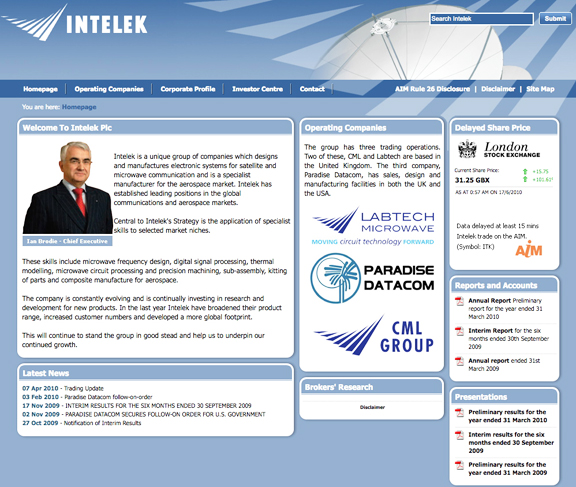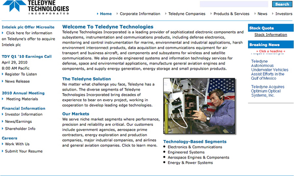 Teledyne is a NYSE listed company with a market capitalization of US$1.4 billion and 2009 revenues of approximately US$1.8 billion. INtelek is an AIM quoted company in the business of designing and manufacturing electronic systems for satellite and microwave communciations, with a focus on the defense and SATCOM markets.