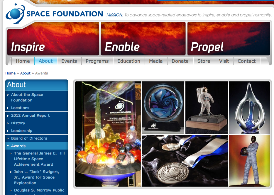 The Space Foundation will present the award, which is named after Mercury Astronaut Alan Shepard, on May 19, 2014, at the opening ceremony of the Space Foundation's 30th Space Symposium at The Broadmoor Hotel in Colorado Springs, Colo. Award information and application instructions are available at.