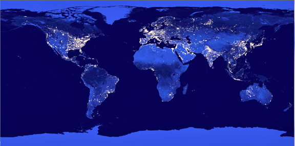 Composite map of the world assembled from data acquired by the Suomi NPP satellite in April and October 2012.