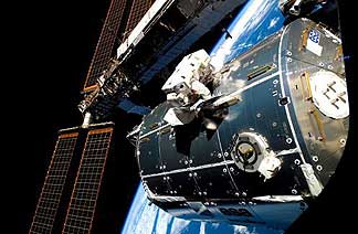ESA astronaut Hans Schlegel working on Columbus exterior during the second spacewalk of the STS-122 mission. As ISS (International Space Station) element, Columbus, research laboratory, structured on the basis of the MPLM (Multi-Purposes Logistics Module) design, will be a perfectly pressurised and habitable environment, as is every other crew area on the ISS, and will be able to host two crew members.Copyright: ©ESA- NASA