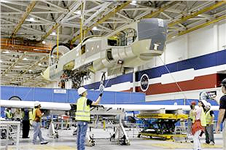 Wing sections were joined to the aircraft's fuselage at the company's production facility in Palmdale, California.