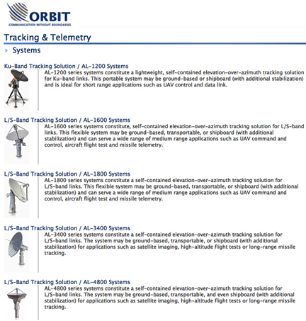ORBIT will supply the defense organization with a turnkey end-to-end aeronautical telemetry solution and will assume full project ownership from installation to operation. ORBIT's highly accurate, off-the-shelf tracking systems for L- and S-bands for antennas ranging from 1.2 to 3 meters in diameter. By offering a combined L- and S-band feed with auto-tracking capabilities, ORBIT's solution eliminates the need for dual antennas, reducing customer's cost by almost half. In addition, the use of off-the-shelf products enabled ORBIT to realistically commit to very fast delivery times. Consistent with customer's functional requirements, ORBIT's products are proven to operate in high temperatures and humidity, and their portability facilitates use in different applications. ORBIT's tracking antenna systems are part of ORBIT's field-proven suite of Tracking & Telemetry systems, which enable continuous communication with aircraft, missiles and UAVs. ORBIT's flight telemetry systems can be operated from fixed positions as well as mobile platforms such as vessels.
