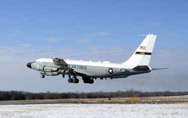 Boeing's RC-135 Rivet Joint reconnaissance aircraft carries the U.S. Air Force's FAB-T hardware in a demonstration of in-flight communications to ground platforms.( U.S. Air Force photo)
