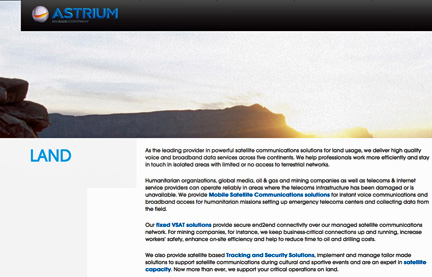 Since its creation in 2003, Astrium Services has been a major satellite telecommunications player for governments and armed forces. The experience acquired by its teams in projects such as Connect-D (a dedicated Astrium-operated mobile network that guarantees German troops stationed in Afghanistan secure coverage when calling their family and friends) enables them to innovate and offer effective solutions to their many customers around the world.