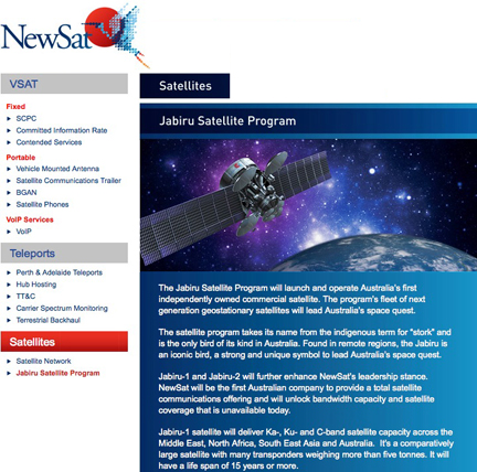 In commenting on the most recent contract win, Adrian Ballintine, NewSat’s Chief Executive Officer, said, “The U.S. military requires high-performance, reliable and secure communications and, as a long term service provider, our expertise and relationships in this market will serve us well for our first geostationary communications satellite, Jabiru-1, which will focus on high value customers in the military, defence and government markets as well as other high value enterprise segments such as resources. Jabiru-1 continues to attract customers from around the globe and term sheets for space on the satellite are numerous and substantial. It is anticipated the Company will make further detailed announcements about Jabiru in April, a little later than anticipated, but not unexpected in the light of the Japanese tragedy and its effect on global markets We expect that the Jabiru announcements will be exciting and company changing."