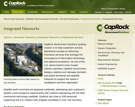 The agreement highlights the company’s ability to provide critical value-added services and significant cost savings for the Department of Defense and Federal Civilian Agencies. Last month, CapRock was one of the first government contractors added to the new sections of the GSA Federal Supply Schedule 70 vehicle. The special item numbers (SINs) for commercial satellite communications services were added to the agency’s contract as part of the Future Commercial Satellite Acquisition (FCSA) vehicle that GSA is managing in partnership with the Defense Information Systems Agency (DISA). The SINs allow customers to purchase pre-packaged and pre-engineered fixed or mobile satellite service solutions and any related equipment and terrestrial components. A wholly owned subsidiary of Harris Corporation, CapRock owns and operates a robust global infrastructure that includes five teleports, four 24 x 7 network operations centers, and eleven regional support centers, and more than 150 in-house field service personnel supporting customer locations across North America, Central and South America, Europe, West Africa and Asia Pacific.