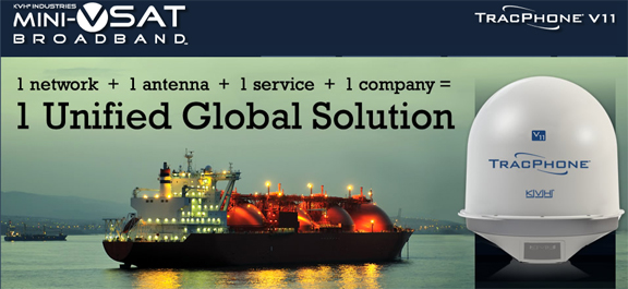 “Our mini-VSAT Broadband network’s new, global C-band overlay coverage offers our maritime customers the type of next-generation service they’ve needed to replace expensive legacy services and still provide the global coverage that they have not been able to get from stand-alone Ku-band maritime VSAT services,” said KVH’s CEO, Martin Kits van Heyningen. “The 1m TracPhone V11 antenna is smaller and lighter than most stand-alone Ku-band antennas, and more than 85 percent smaller and lighter than the gigantic 1,500 pound, 3.3 meter C-band domes used with older VSAT technology. The best part is that it’s one system, not two different antennas like competing products. Further, the same below-decks modem is used for both the C- and Ku-band for a truly seamless and unified solution for the customer. Unlike hybrid systems that use different technologies, this is a pure VSAT solution delivering unified service and hardware that translates to higher quality data connections. IT managers don’t have to contend with trying to use different networks with different latencies, IP settings, or protocols to run their onboard applications,” he added.