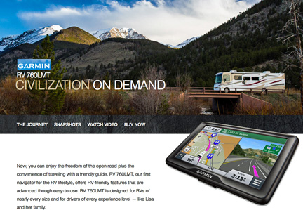 [SatNews] Garmin® International Inc., a unit of Garmin Ltd. (NASDAQ: GRMN), a global leader in satellite navigation, has announced the RV 760LMT, its first navigator created just for the RV lifestyle. The 7-inch GPS device is packed with signature Garmin navigation features as well as RV-friendly functions to guide RV drivers with confidence.