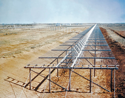 The existing Air Force Space Surveillance System, or VHF Fence, has been operational since the early 1960s, and will be replaced by the Space Fence, illustrated here. Image courtesy of Lockheed Martin.