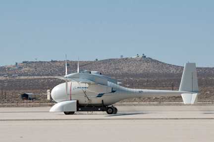 Phantom Eye's innovative and environmentally responsible liquid-hydrogen propulsion system will allow the aircraft to stay on station for up to four days while providing persistent monitoring over large areas at a ceiling of up to 65,000 feet, creating only water as a byproduct. The demonstrator, with its 150-foot wingspan, is capable of carrying a 450-pound payload. Its first flight, in coordination with NASA's Dryden Flight Research Center at Edwards, was in June 2012.