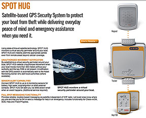 Launched initially for the maritime community, SPOT HUG monitors the boat's position and detects any Unauthorized Movement automatically alerting a 24/7 Asset Monitoring Center and registered boat owner with its GPS coordinates. SPOT HUG also comes equipped with sensor monitoring capabilities and established SPOT messaging features for sending location-based messages over the Globalstar satellite network to others, including an international rescue coordination center in critical emergencies. Because SPOT HUG is 100 percent satellite based, it is capable of providing coverage far beyond the range of cellular phones and VHF radios.