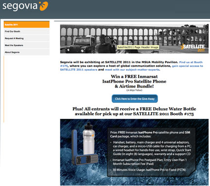 Segovia, Inc., a wholly owned subsidiary of Inmarsat plc and a provider of secure, global telecommunications to the public and private sectors, announced Company executives will speak on several panels at SATELLITE 2011, March 14-17, in Washington, DC. and their communication solutions will be on display at Booth 175. The following Segovia executives are speaking at SATELLITE 2011: