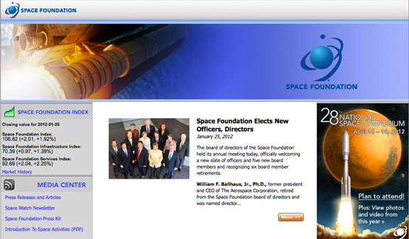 William F. Ballhaus, Jr., Ph.D., former president and CEO of The Aerospace Corporation, retired from the Space Foundation board of directors and was named director emeritus. Ballhaus had served as a member of the board since 2001, was vice chairman 2008-2010 and chairman of the board from 2010-2012.