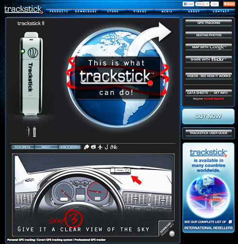Tracksticks are tiny GPS location recorders capable of continuously logging their own location histories for extended periods of time. The Trackstick records its own location, time, date, speed, heading and altitude at preset intervals. Traveled routes can be viewed directly in Google Earth™ , and includes GPX photo stamping feature for adding favorite photos to maps. Trackstick is a division of Telespial Systems