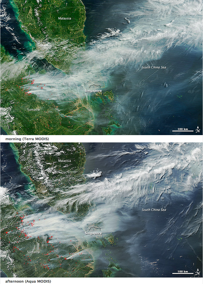 Though local laws prohibit it, farmers in Sumatra often burn forests during the dry season to prepare soil for new crops. The BBC reported that Singapore’s Prime Minister Lee Hsien Loong warned that the haze could “easily last for several weeks and quite possibly longer until the dry season ends in Sumatra.”