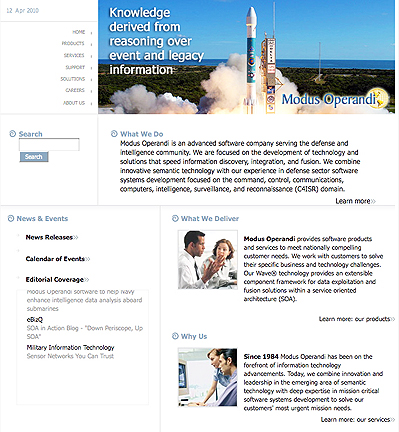 Modus Operandi has been awarded a $600,000 U.S. Navy contract to develop a service-oriented architecture (SOA) framework for data fusion on submarines. The Phase II Small Business Innovation Research project, called Wave System of Systems (Wave-SOS), will create a framework that will fuse together and analyze incoming intelligence information from multiple, disparate sources, providing a much clearer operating picture for submarine commanders.