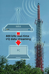 ...Remote Spectrum Analyzer: The NRA-3000 and NRA-6000 models now provide uninterrupted I/Q data as a real-time stream. At the same time, the number of samples for spectrum analysis has been increased to more than 600,000 in number. The “Scope and I/Q Data” option for the NRA-3000 and NRA-6000 analyzers deliver the data from signal sequences separated into the real (or in-phase) and the imaginary (quadrature) components. Coverage is uninterrupted up to a channel bandwidth of 400kHz.