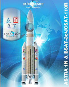 ASTRA 1N is located in the upper position of Ariane 5's payload "stack" and will be released first during the mission sequence. It is a state-of-the-art Ku-band spacecraft for the delivery of pan-European direct-to-home TV broadcast services for satellite operator SES ASTRA. This spacecraft was built by EADS Astrium using its Eurostar E3000 spacecraft bus, and initially will provide interim capacity from an orbital position of 28.2 degrees East. The relay platform subsequently will be moved to SES ASTRA's prime location at 19.2 degrees East for primary and backup services.