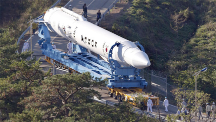 The 140-ton rocket will lift off from South Korea's Naro Space Centre. It will orbit a small satellite to collect data on space radiation. The project has been dogged by failures, notably in 2009 when the rocket failed to deliver a 100-kilogram oceanic and atmospheric research satellite into orbit. In 2010, the carrier exploded two minutes after take-off.