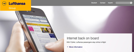 The extremely fast, high-performance inflight Internet service gives passengers with a WLAN-enabled laptop or smartphone unlimited online access. Thanks to the high bandwidth, emails can be sent and received without any time delay. Business travellers can also access their company’s Virtual Private Network (VPN). In spring 2011, inflight data communication should also be possible using the mobile phone standards GSM and GPRS. In addition to the wireless Internet (WLAN) service, Lufthansa customers will then be able to use their mobile phones to send and receive SMS text messages and transfer data with smart phones such as the iPhone or PDAs such as BlackBerry. FlyNet is incredibly easy to use. Passengers, no matter where they are sitting on the aircraft, can logon to the Internet with any WLAN-enabled device, just as at any public hotspot, or in the near future, set up a connection with a GSM/GPRS-enabled device. After opening the browser, they can automatically access the exclusive, free Lufthansa FlyNet portal, where they will find constantly updated news about economics, politics, sports and entertainment. Thanks to the introductory FlyNet offer, inflight Internet access will be available for free on FlyNet-equipped aircraft until January 31, 2011.