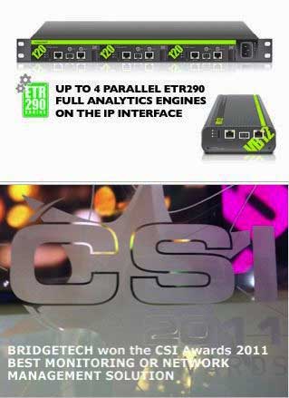 Bridge Technologies' VideoBRIDGE digital media monitoring and analysis system has won the 2011 CSI Award for Best Monitoring or Network Management Solution. The award was presented at a ceremony at the International Broadcast Convention in Amsterdam.