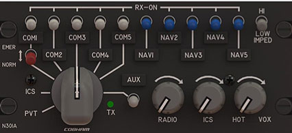 Cobham has added another removable legend panel to the N301A family of audio controllers that enables installers to change control names without removing the controller from the cockpit panel, or returning to an authorized dealership. The N301A- 3xx series includes a selection switch that allows operators to choose compatibility of the N301A between commercial and military headsets, making it one of their most popular audio components.